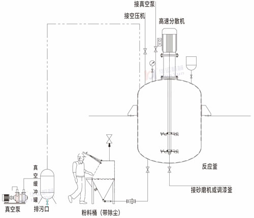 通過真空將助劑負(fù)壓吸入生產(chǎn)罐內(nèi)。