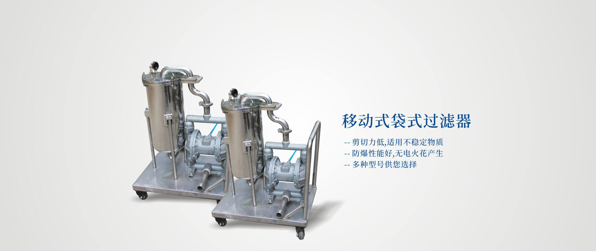 袋式過濾器是一個簡便、高效、經濟的過濾設備。包括過濾外殼、網籃、濾袋。操作簡單、方便,需要過濾的流體從上口進入濾袋,雜質被阻擋在袋內,從而得到清潔的流體。過濾精度為 1-1000um,廣泛應用于成套設備,而這種移動式袋式過濾器裝置在手推車上,可隨意移動至任何生產線上進行工作,同樣適用于傳統的設備,和灌裝機配套使用,可形成一條完全在自控狀態下的過濾、灌裝流水線。剪切力極低,適用于不穩定物質;壓縮空氣作動力,適合于中高粘度物料;防爆性能好,無電火花產生。達到了安全、高效的過濾效果。我們有多種型號足以滿足您的過濾要求。